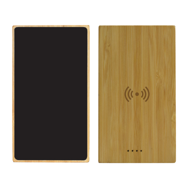 LIGHT UP LOGO BAMBOO WIRELESS POWER BANK