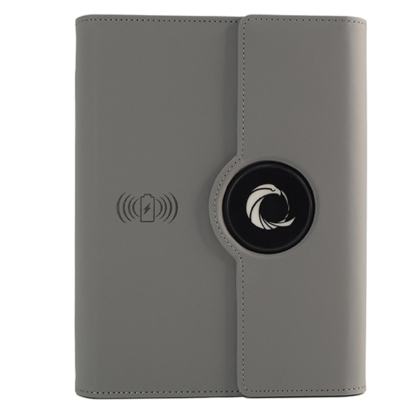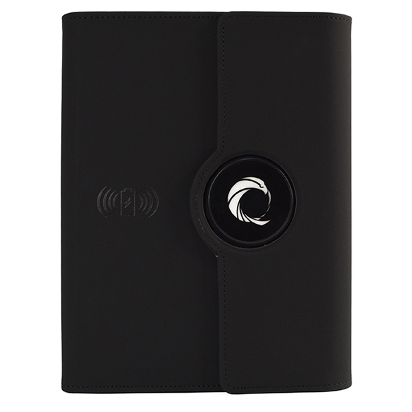 Document folder with notepad, built-in wireless fast charger