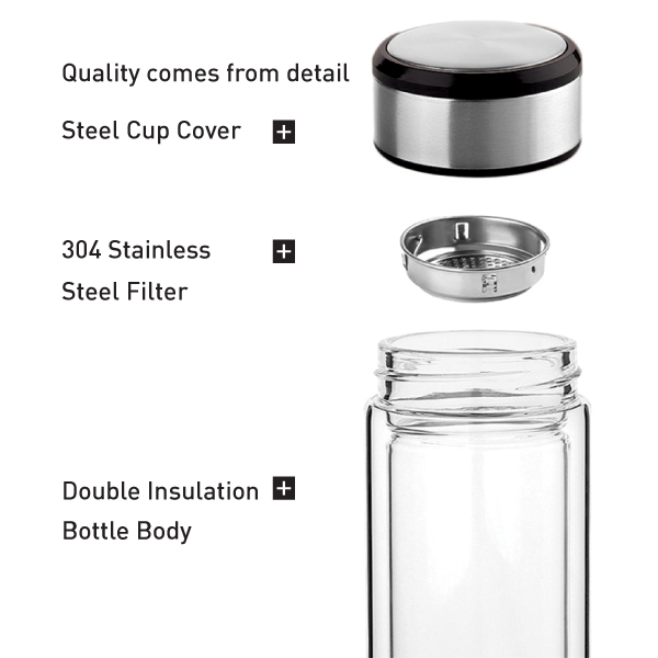 Steel Filter, Double insulation bottle body.